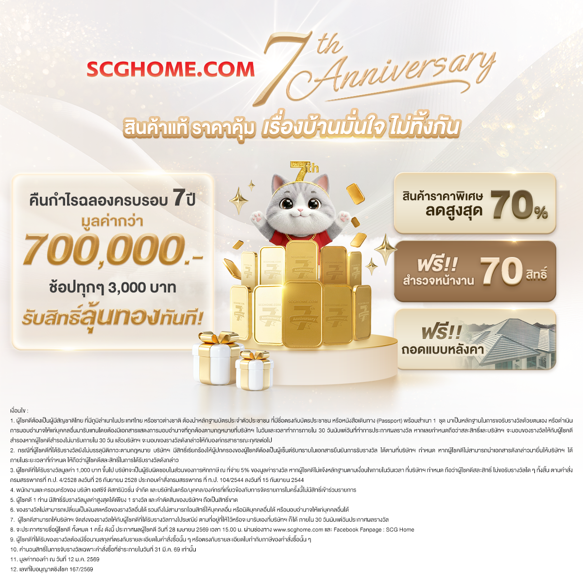 SCGHOME.com ฉลองใหญ่ครบรอบ 7 ปี จัดแคมเปญ “7th Anniversary” อัดฉีดรางวัลมูลค่ากว่า 7 แสนบาท พร้อมทัพสินค้าและบริการปรับปรุงบ้านครบวงจร การันตีคุณภาพและเชื่อถือได้