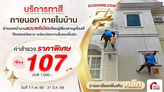 - ระยะเวลารับประกัน 1 ปี ในกลุ่มสินค้าและบริการเกรดสีคุณภาพสูงสุด (Ultra Premium Paint) / ระยะเวลารับประกัน 6 เดือน ในกลุ่มสินค้าและบริการเกรดสีปกติ (Premium Paint)