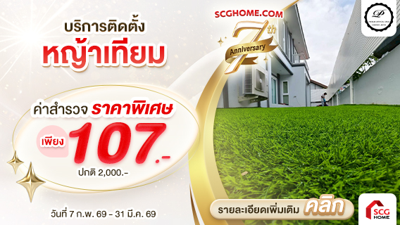 - Package 7 หญ้า Pet Friendly สำหรับสัตว์เลี้ยง ความสูงของเส้นหญ้า 3 ซม. ราคา 1,100 บาท/ตร.ม.