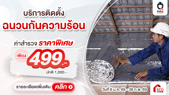 ราคาเริ่มต้น 12,756 บาท/งาน (262 บาท/ตร.ม. พื้นที่ขั้นต่ำ 48 ตร.ม. รวมสินค้าพร้อมติดตั้ง)