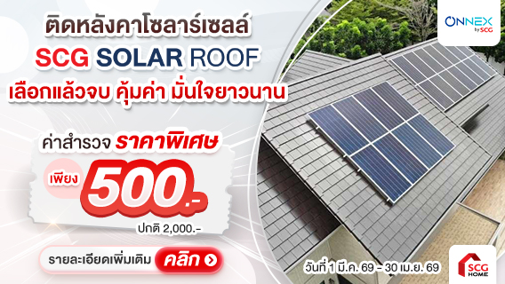 พิเศษโปรโมชั่นส่วนลดค่าสำรวจ คุ้ม 4 ต่อ ผ่อน 0% 4 เดือน ผ่านบัตรเครดิตที่ร่วมรายการ BBL, SCB, KTC, UOB, ttb, KCC, KBANK , Krungsri First Choice พร้อมหากเป็นสมาชิก SCG HOME สะสมคะแนนทันที SCG Family Plus+ เพื่อรับเป็นส่วนลด และ SCG Home Star เพื่อแลกของสมนาคุณ สามารถคลิกดูรายละเอียด โปรโมชั่นติดตั้งโซล่าเซลล์ SCG Solar Roof