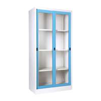 ตู้บานเลื่อนกระจกสูง พร้อม 3 แผ่นชั้นปรับระดับได้ และกุญแจ แผ่นชั้นสามารถปรับความสูงได้และสามารถซื้อเพิ่มได้