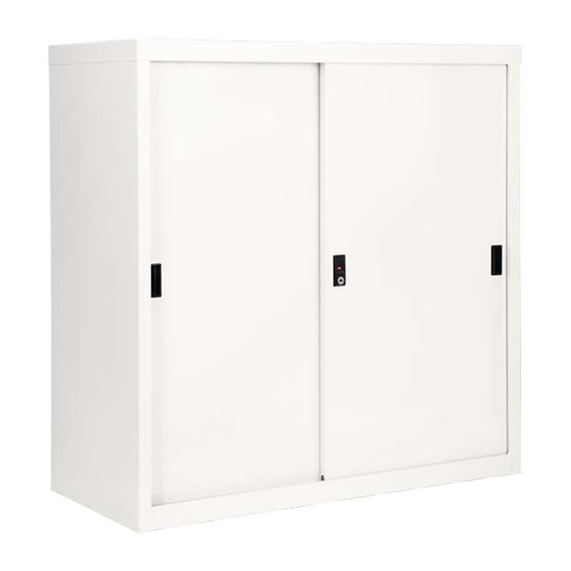ตู้บานเลื่อนทึบพร้อม 2 แผ่นชั้นปรับระดับได้และกุญแจ ชั้นวางของเสริมคานเหล็ก 2 ชั้น