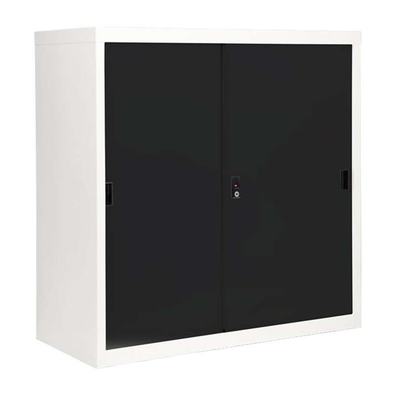 ตู้บานเลื่อนทึบพร้อม 2 แผ่นชั้นปรับระดับได้และกุญแจ ชั้นวางของเสริมคานเหล็ก 2 ชั้น