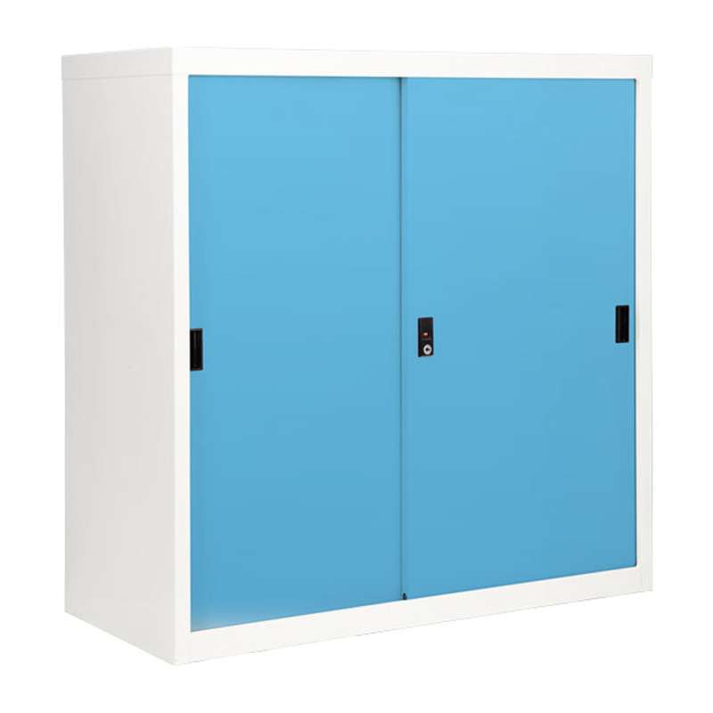ตู้บานเลื่อนทึบพร้อม 2 แผ่นชั้นปรับระดับได้และกุญแจ ชั้นวางของเสริมคานเหล็ก 2 ชั้น