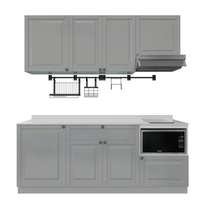 1 .หน้าบานโปรไฟล์เมมเบรนสีเทา หุ้ม 5 ด้าน ป้องกันน้ำซึมบริเวณขอบบาน 2.เคาน์เตอร์ท้อปหินสังเคราะห์ ถูกสุขอนามัย พื้นผิวไม่มีรูพรุน 3.เพิ่มความหรูหราให้กับชุดครัว ด้วยดีไซน์บานเปิด-ปิด (ทั้งบานพับและรางลิ้นชัก) แบบSoft-close 4.ตะแกรงคว่ำจาน 5.ตะแกรงแชวนใส่ช้อน 6.ที่ใส่ทิชชู่แบบแขวน 7.ราวแขวนสแตนเลสพ่นสีดำ 8.ถาดเก็บข้อน-ส้อมภายในลิ้นชัก 9.ถังขยะภายในตู้ 10.ที่เก็บถุงพลาสสติกภายในตู้