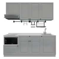 COMPACT KITCHEN ALICE ชุคครัวสำเร็จรูปขนาดกะทัดรัด สไตล์วินเทจเข้ากับการแต่งบ้านได้ง่าย ดีไซน์ครบฟังก์ชั่นการใช้งานเหมาะกับพื้นที่ครัวขนาดเล็ก และตอบสนองไลฟ์สไตล์การทำครัวของคนรุ่นใหม่ ด้วยคุณสมบัติโดดเด่นและพร้อมอุปกรณ์ครบครันดังนี้ 1 .หน้าบานโปรไฟล์เมมเบรนสีเทา หุ้ม 5 ด้าน ป้องกันน้ำซึมบริเวณขอบบาน 2.เคาน์เตอร์ท้อปหินสังเคราะห์ ถูกสุขอนามัย พื้นผิวไม่มีรูพรุน 3.เพิ่มความหรูหราให้กับชุดครัว ด้วยดีไซน์บานเปิด-ปิด (ทั้งบานพับและรางลิ้นชัก) แบบSoft-close 4.อุปกรณ์ประปา สายน้ำดี-สต๊อปวาล์ว 5.อ่างล้างจานสแตนเลสพร้อมตะแกรง 6.ก๊อกน้ำ 7.ตะแกรงคว่ำจาน 8.ตะแกรงแชวนใส่ช้อน 9.ที่ใส่ทิชชู่แบบแขวน 10.ราวแขวนสแตนเลสพ่นสีดำ 11.ถาดเก็บข้อน-ส้อมภายในลิ้นชัก 12.ถังขยะภายในตู้ 13.ที่เก็บถุงพลาสสติกภายในตู้