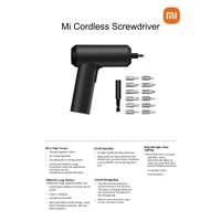 Mi Cordless Screwdriver (27002) ไขควงไฟฟ้าไร้สาย มีหัวเปลี่ยนทั้งหมด 12 แบบ พร้อมหัวเพิ่มความยาว บรรจุในกล่องโลหะ พร้อมกระเป๋าสำหรับพกพา แรงบิดขนาด 5 นิวตันเมตร สามารถปรับทิศทางได้ทั้งขันเข้า - คลายออก มีไฟ LED ที่จะติดเองเมื่อกดปุ่มใช้งาน เพื่อความสะดวกในที่แสงน้อย แบตเตอรี่ขนาด 2000 mAh สามารถขันสกรูได้ประมาณ 180 ตัว ชาร์จด้วย Port: Type-C ขนาดหัวไขควง : PH1 / PH2 / PH3 / H3 / H4 / H5 / SL4 /SL6/PZ2 /T15 / T20 / T25