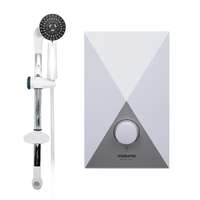 เครื่องทำน้ำอุ่นดีไซน์เรียบหรู สีขาว กำลังไฟ 4500 วัตต์ จากแบรนด์ MAZUMA มาพร้อมกับชุดฝักบัวที่สามารถปรับได้ 5 ระดับ เพื่อให้คุณผ่อนคลายขณะอาบน้ำได้ดีมากยิ่งขึ้น วงจรควบคุมอุณหภูมิน้ำแบบปรับหมุนต่อเนื่อง ช่วยให้คุณสามารถปรับอุณหภูมิน้ำได้ตามต้องการ มีระบบ Flow & Reed Switch ควบคุมการทำงานของเครื่องด้วยการไหลของน้ำ และมีระบบเทอร์โมสตัทในชุดจะตัดการทำงานทันที เมื่ออุณหภูมิน้ำเกินกว่า 57 องศาเซลเซียส เพื่อป้องกันการทำงานในอุณหภูมิที่เกินกำหนด ออกแบบตามมาตรฐาน IPX4 ป้องกันน้ำเข้าเครื่อง เหมาะกับการติดตั้งและใช้งานในห้องน้ำทุกรูปแบบ