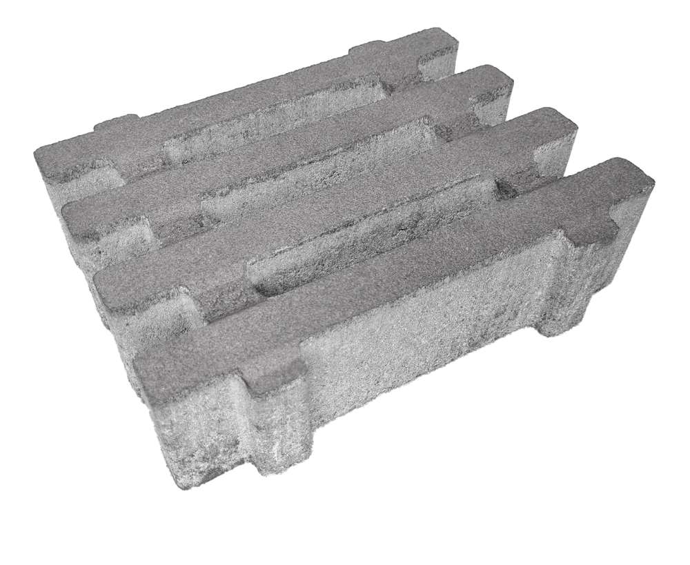 บล็อกปลูกหญ้ารูปทรงสี่เหลี่ยมสไตล์โมเดิร์น ที่ดีไซน์ช่องปลูกหญ้าให้เป็นแนวยาว เมื่อปูเสร็จแล้วจะเห็นแนวหญ้าที่เป็นเส้นยาว เรียวเท่แบบมินิมอล