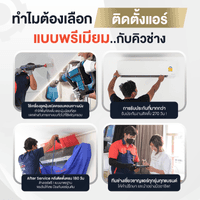 - ระยะเวลาในการติดตั้งแอร์ 2-4 ชั่วโมง ขึ้นอยู่กับความยากง่ายของหน้างาน