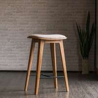 เก้าอี้บาร์สตูลไม้โอ๊คทรงสูง ที่ออกแบบให้เบาะโค้งเล็กน้อย บุด้วยฟองน้ำหุ้มผ้า นั่งสบาย โครงที่พักขาเป็นเหล็กดำด้าน มีกลิ่นอายตะวันตกผสมตะวันออกได้อย่างลงตัว สามารถเข้ากับบ้าน หรือcafe แบบminimalได้เป็นอย่างดี วัสดุหลัก: โครงไม้โอ๊ค เบาะนั่ง: ฟองน้ำหุ้มผ้า รับน้ำหนักได้: 120kg