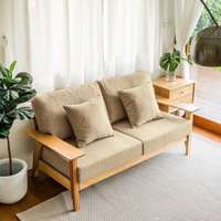 โซฟาโครงไม้โอ๊ค 2ที่นั่งเหมาะกับห้องที่มีพื้นที่จำกัด เช่นคอนโดมิเนียม หรือห้องนอน โครงสร้างโซฟามีกลิ่นอายJapanese minimal ชัดเจน เบาะและพนักหุ้มบุผ้าสีเบจ หรือเทาอ่อนถูกออกแบบเพื่อง่ายต่อการตกแต่งห้องในทุกเฉดสี วัสดุหลัก: โครงไม้โอ๊ค เบาะพนักพิง: ใยสังเคราะห์หุ้มผ้า ถอดซักได้ เบาะนั่ง: ฟองน้ำหุ้มผ้า ถอดซักได้ ผ้า: ผ้าโพลีเอสเตอร์โพลีเอสเตอร์ รับน้ำหนักได้: 150kg