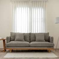 โซฟาโครงไม้ไม้เชอรี่ ที่ออกแบบอย่างเรียบง่ายสบาย แต่ให้ความรู้สึกทันสมัยด้วยผ้าหุ้มแบบกำมะหยี่ ตัวเบาะให้ความรู้สึกนุ่มจากงานขนเป็ด แต่ไม่ยวบเพราะเสริมฟองน้ำที่ด้านล่างของเบาะ ตัวผ้าหุ้มถอดซักได้ทุกชิ้นทั้งหมอน ตัวเบาะ และผ้าหุ้มโครงโซฟา ทำให้ไม่ตองกลัวการเปื้อน หรือฝุ่นอีกต่อไป วัสดุหลัก: โครงไม้เชอรี่ เสริมสปริง เบาะพนักพิง: ขนเป็ดและห่าน ถอดซักได้ เบาะนั่ง: ฟองน้ำและขนเป็ด ถอดซักได้ ผ้า: ผ้าโพลีเอสเตอร์กำมะหยี่ลูกฟูก รับน้ำหนักได้: 150kg