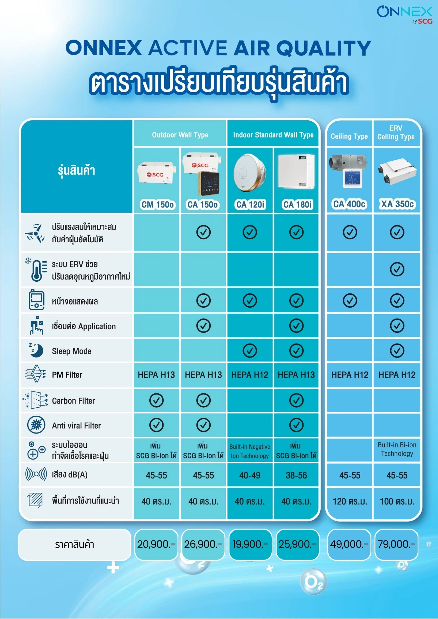 • กรองและกำจัดเชื้อโรค ด้วยแผ่นกรองชั้น HEPA H13 และ Anti-Viral (และอุปกรณ์เสริม SCG Bi-ion)