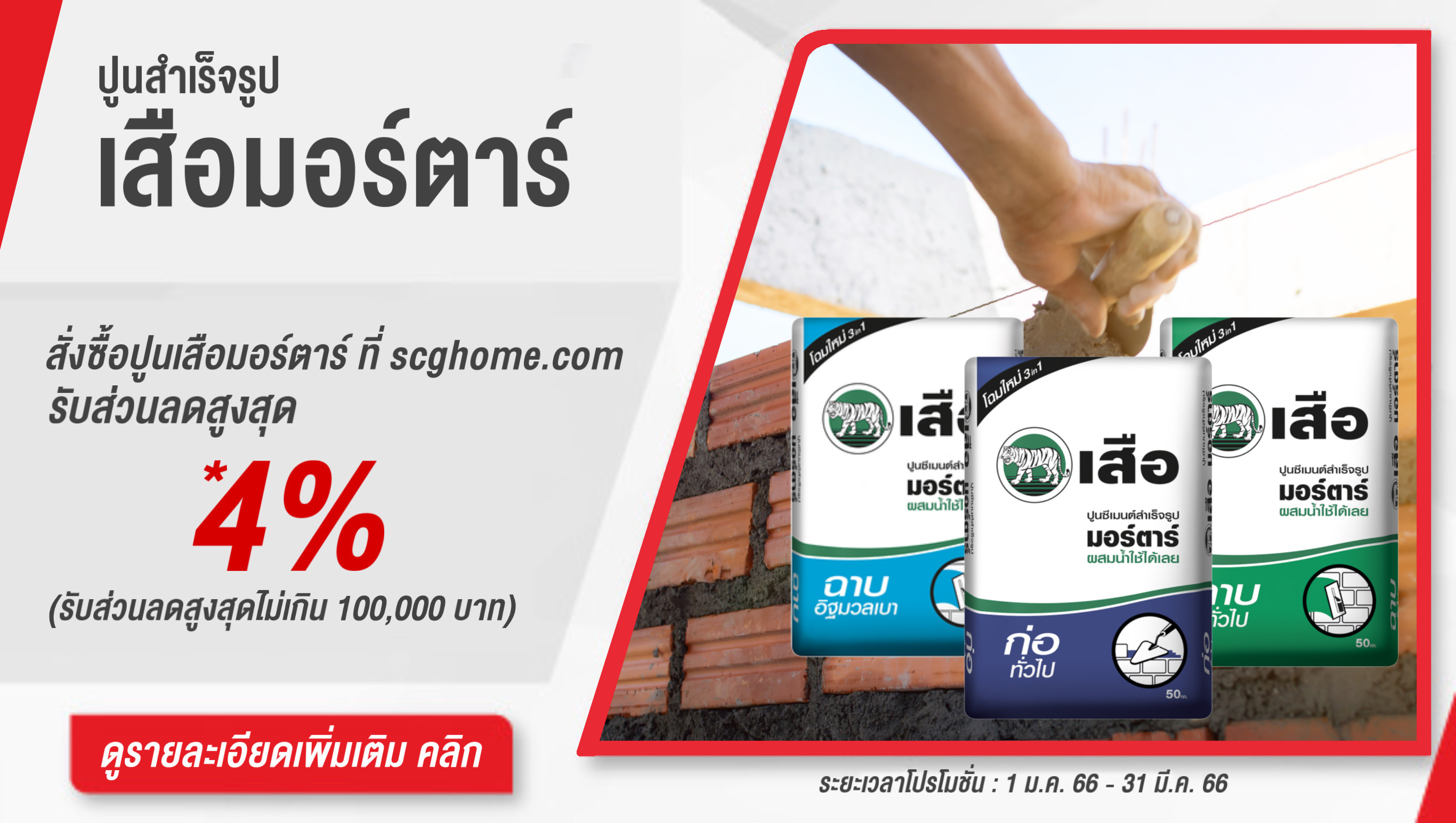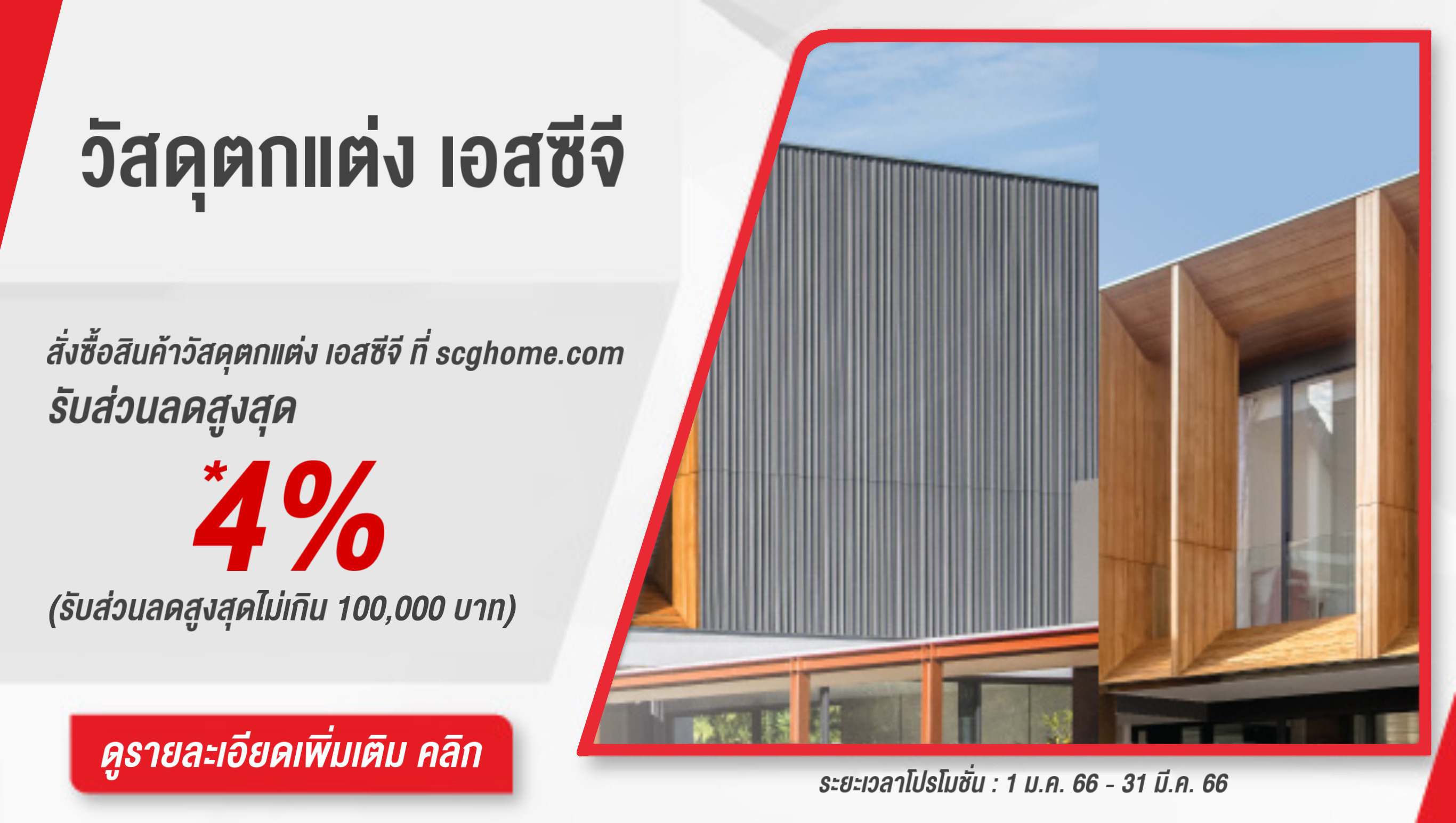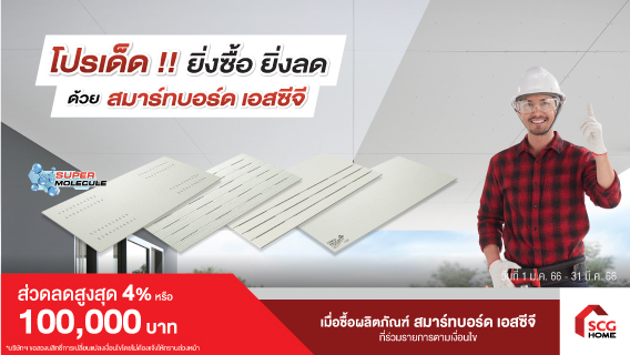 - ได้สิทธิพิเศษเพิ่มเติมโค้ดส่วนลด 200 บาท เพื่อใช้ช้อปในครั้งถัดไป โดยชำระผ่าน Application SCG Home และมียอดชำระขั้นต่ำ 2,500 บาท