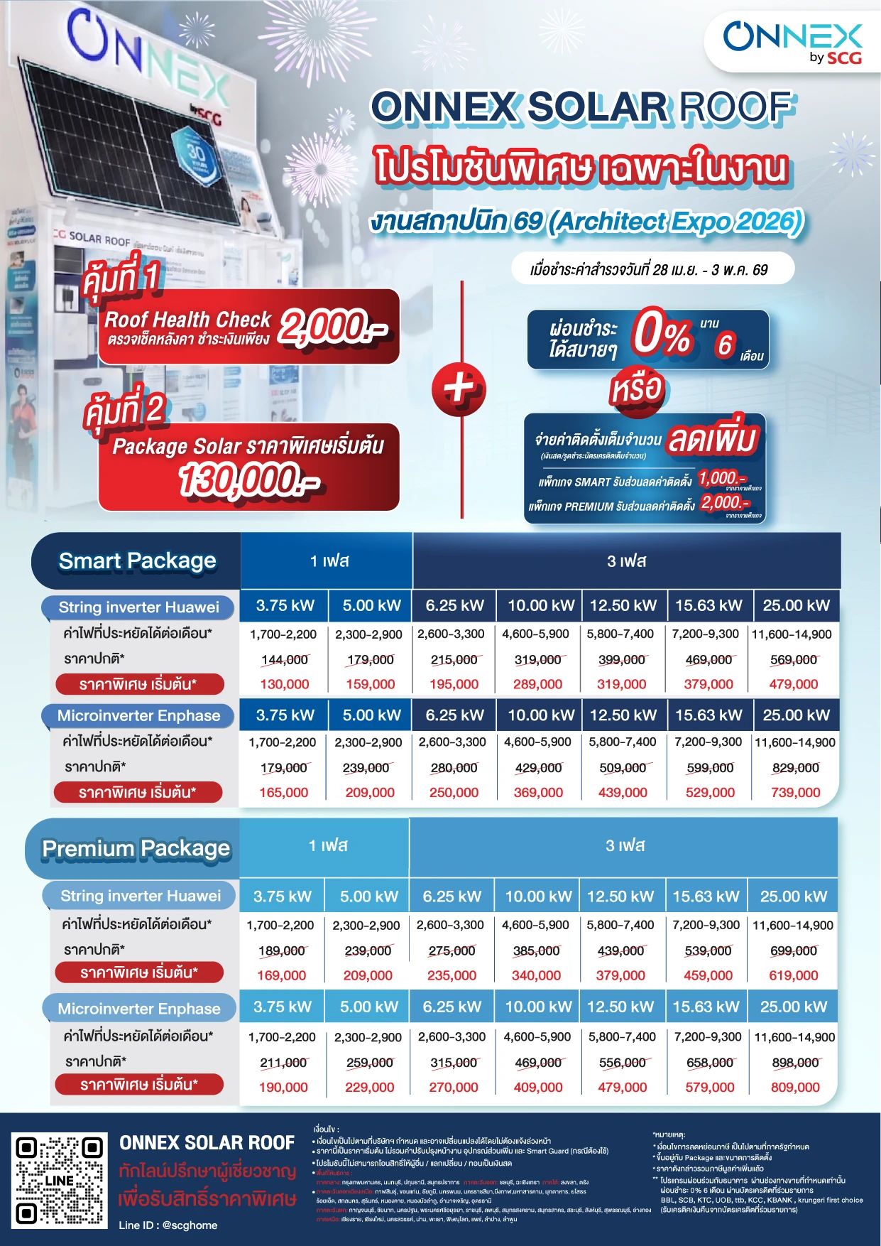- ต่อที่ 1 : Package Solar string inverter huawei 3.75 kw ราคาพิเศษ เริ่มต้น 130,000.- (จากปกติ 144,000.-) .ให้สิทธิ์สำหรับลูกค้าที่ชำระค่าสำรวจภายใน 28 เม.ย. 69 - 3 พ.ค. 69