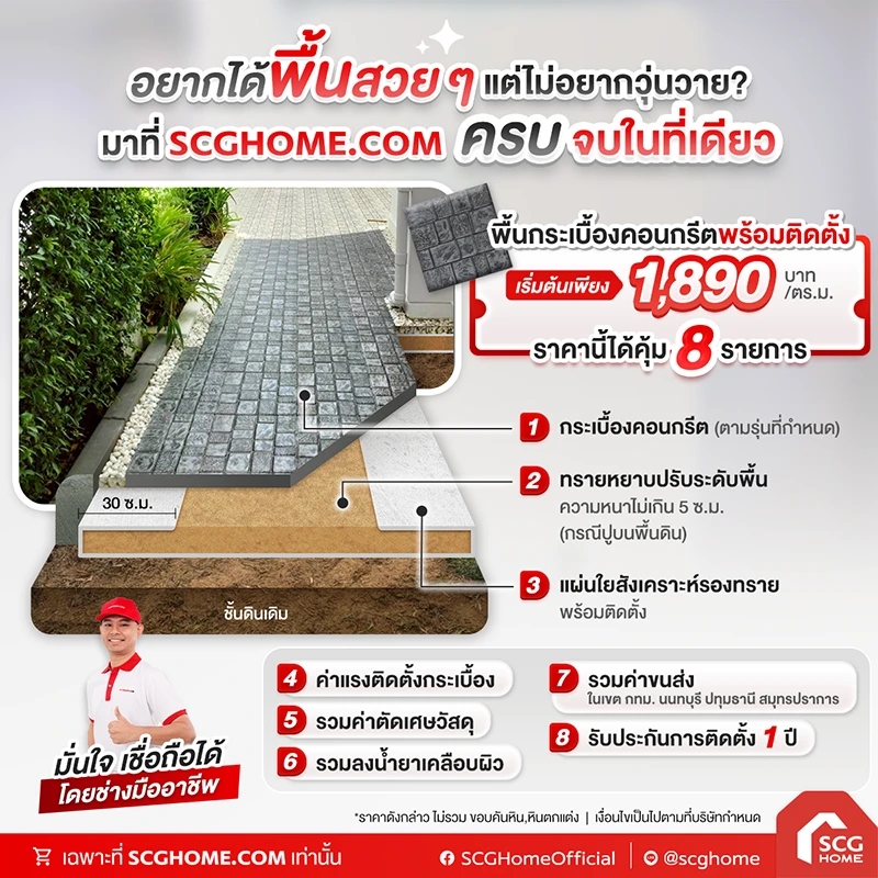 กระเบื้องปูพื้นคอนกรีตเอสซีจี พร้อมบริการติดตั้ง